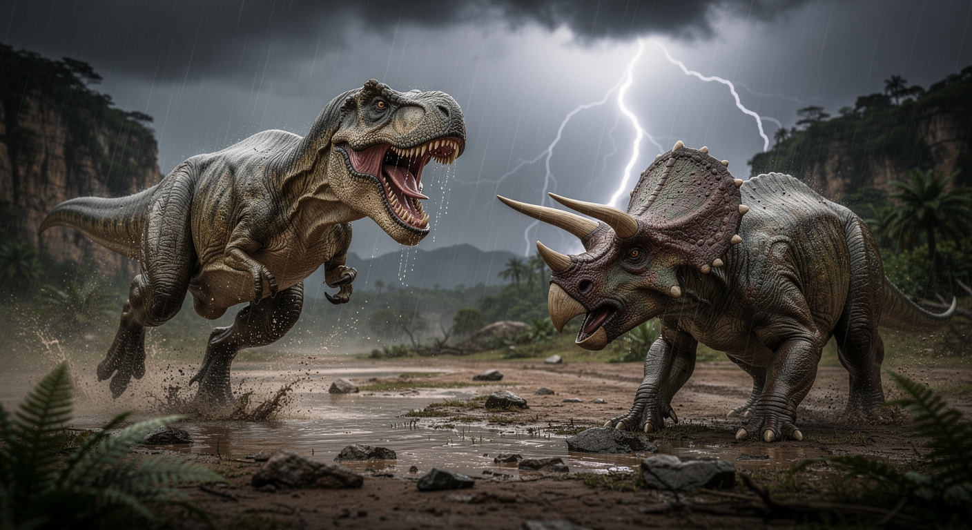 Le tableau change radicalement si l’on avance de 70 millions d’années, à l’époque du Tyrannosaurus rex. Les prédateurs de cette période plus tardive faisaient face à un environnement bien différent. Les proies faciles comme les jeunes sauropodes étaient moins nombreuses, et les grands herbivores disposaient de défenses bien plus redoutables.