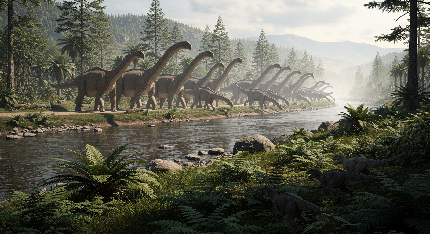 Différentes espèces de sauropodes, comme le Diplodocus et le Brachiosaurus, se nourrissaient à différentes hauteurs, ce qui leur permettait de coexister sans se faire concurrence pour les mêmes plantes. En piétinant le sol, en broutant et en arrachant les branches, ces géants agissaient comme des « ingénieurs d’écosystème », des animaux qui remodèlent physiquement leur habitat. Un tel poids concentré sur un seul groupe signifie que la survie du système entier ne dépendait pas uniquement des plantes, mais aussi du nombre de jeunes qui parvenaient à l’âge adulte.