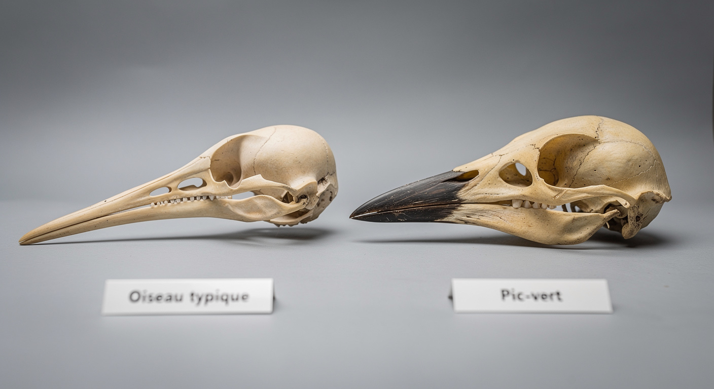 Le secret réside dans l’articulation de la mâchoire. Chez les oiseaux, la mâchoire inférieure se connecte au crâne via un os mobile appelé os carré. Chez le pic-vert, cette charnière est disposée de manière beaucoup plus compacte et aplatie. L’impact se produisant plus près de ces articulations, il y a moins de bras de levier. Cela réduit le couple – cette force de torsion qui peut endommager les structures lors de chocs répétés. Comme le résume Sebastián Lyons : « Le crâne du pic-vert n’est pas conçu pour absorber les impacts ». Au contraire, sa forme aide à maintenir tout le système aligné pour que les forces puissantes restent stables plutôt que de devenir rotatives.