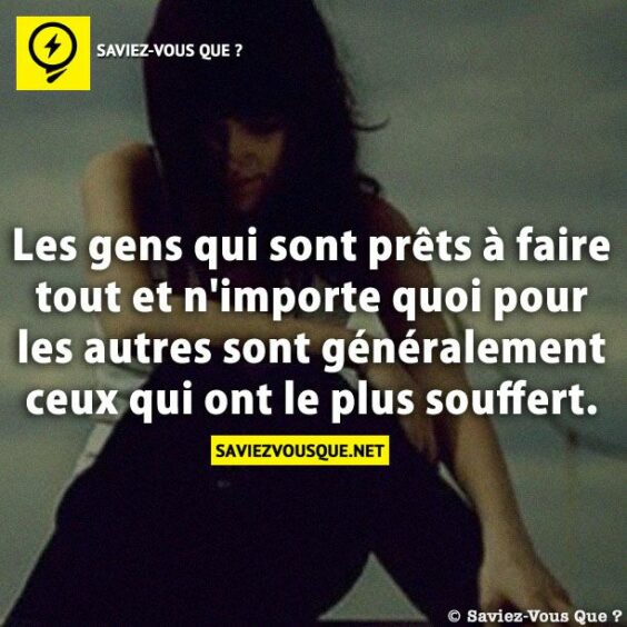Les gens qui sont prêts à faire tout et n'importe quoi pour les autres sont généralement ceux qui ont le plus souffert.