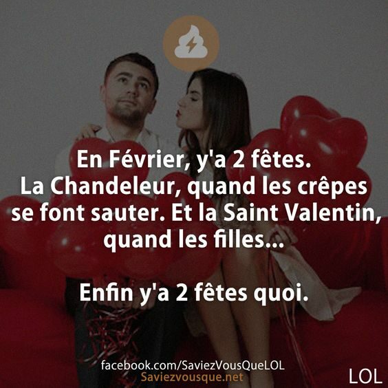 En Février, y'a 2 fêtes. La Chandeleur, quand les crêpes se font sauter. Et la Saint Valentin, quand les filles... Enfin y'a 2 fêtes quoi.